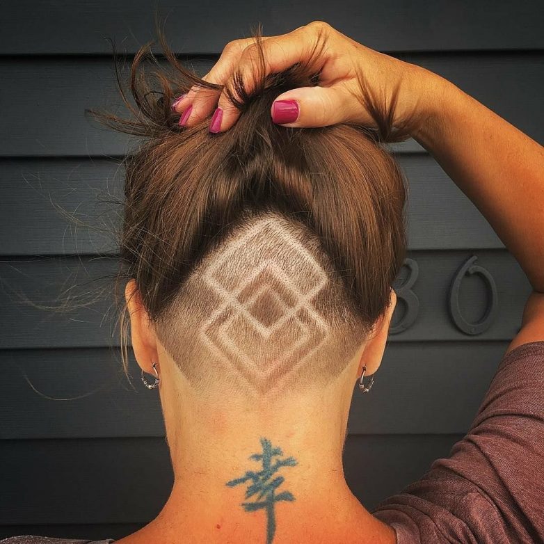 Стрижка с татуировкой на затылке