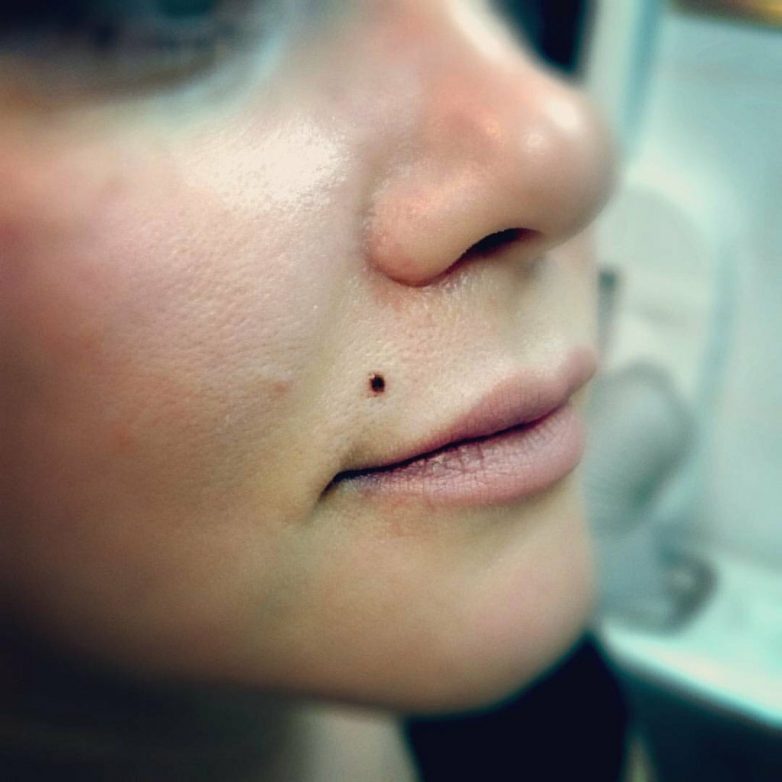 Добавить образу загадочности и внести в свой имидж нотку кокетства можно при помощи перманентного макияжа мушки. При помощи технологии вы можете сделать искусственную родинку в любом месте, именно она будет привлекать внимание и отвлекать от морщин. Но если сделать ее жирной, огромной, то вся интрига испарится.
