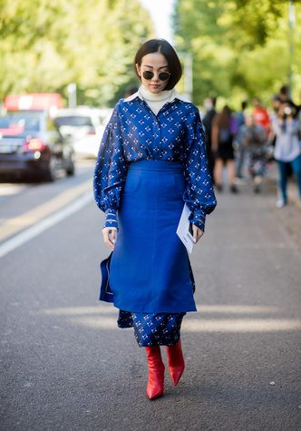 Еще один интересный способ разнообразить гардероб, носить вместе красный и синий. Два сильных и броских цвета смотрятся невероятно эстетично, броско и интересно. Это могут быть контрастные топы и брюки, а может быть просто яркий и акцентный аксессуар, сумка или обувь, добавленные к платью, костюму или верхней одежде