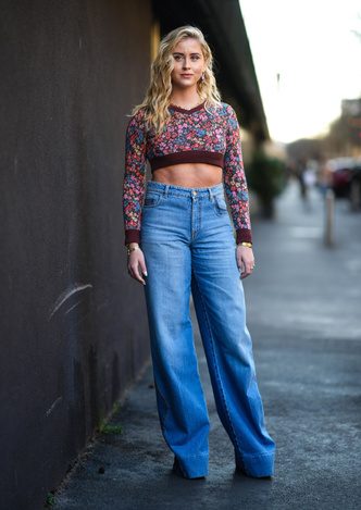 Как и в случае с другими вещами свободного кроя, с широкими джинсами необходимо соблюдать баланс пропорций, чтобы не превратиться в бесформенный мешок. Джинсы с широкими штанинами стоит сочетать с вещами облегающего кроя. Например, в модель с высокой посадкой можно заправить майку или топ по фигуре, а также надеть вместе с лонгсливом или водолазкой. К наряду стоит подобрать обувь на каблуке, которая также поможет сбалансировать пропорции и вытянут фигуру.