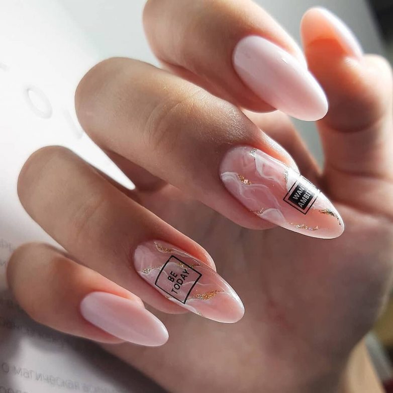 Пастельные оттенки подходят всем дамам без исключения. Однотонный маникюр в приятных оттенках, бесспорно, в моде, но также вы можете разбавить дизайн яркими блестками, креативными рисунками и стильными надписями.