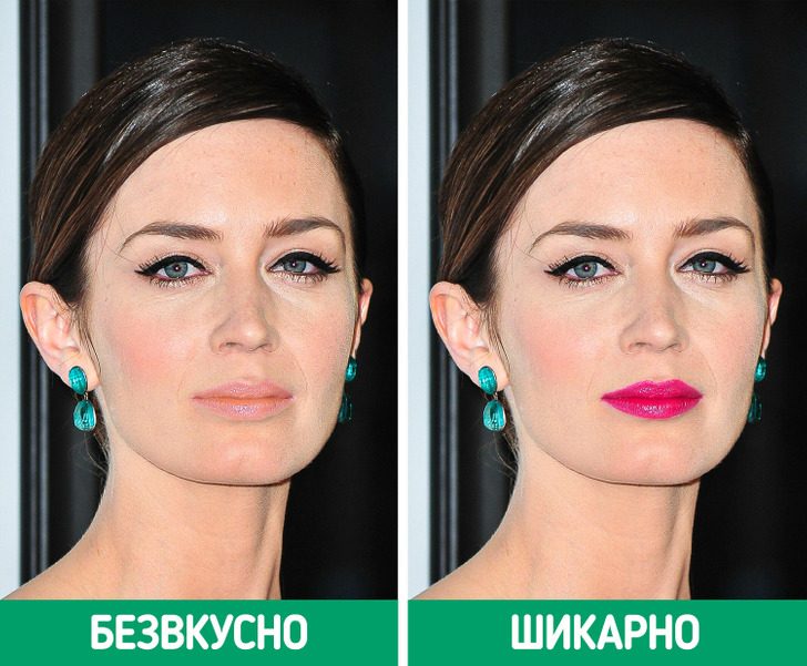 При выборе сережек важно учитывать цвет помады. Он должен гармонировать с украшением в соответствии с цветовым кругом. Рекомендуется найти на цветовом круге оттенок своей помады и посмотреть, какой цвет находится напротив него — серьги с таким камнем будут смотреться особенно выигрышно. Например, к розовой помаде подойдет бирюзовый камень.