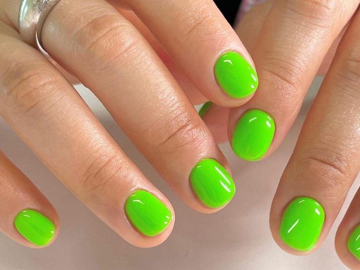 Слишком яркий маникюр выглядеть неуместно на руках зрелой женщины, особенно, если неон дополнен дизайном. Неоновые лаки могут сыграть злую шутку и наоборот подчеркнут возраст, поэтому лучше присмотреться к более сдержанным оттенкам: классическому красному, розовому и фиолетовому.