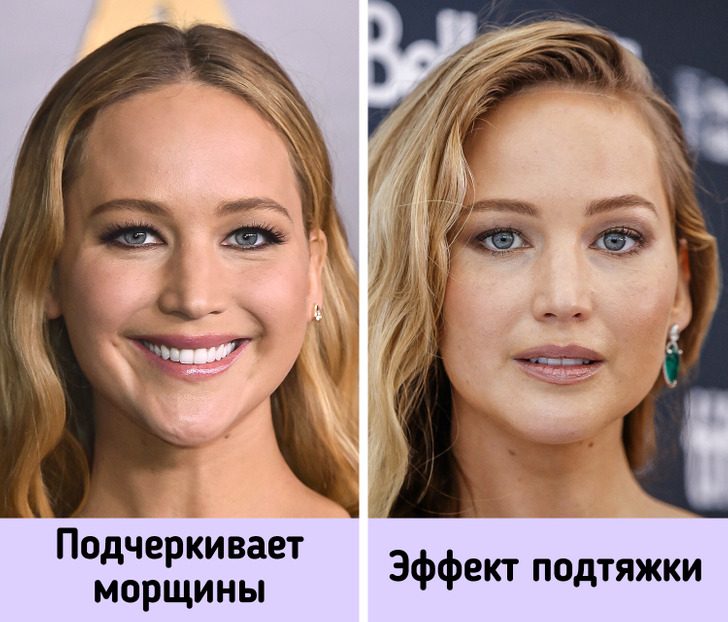 Профессионалы в области макияжа рекомендуют остерегаться густой подводки, в особенности на нижнем веке. Яркие линии могут акцентировать внимание на темных кругах и морщинах.