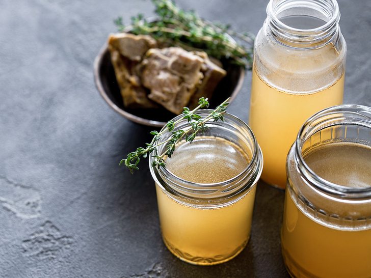 Коллаген и эластин можно получить, увеличив в рационе количество костного бульона, который варится от одних до нескольких суток. Присутствуют они и в мясных, рыбных субпродуктах (язык, сердце, почки).
