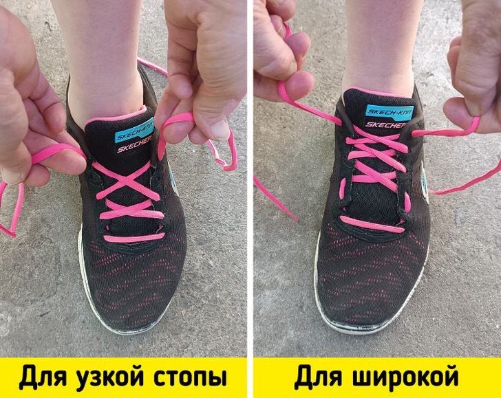 Шнурки помогают подогнать обувь по размеру, подтянуть или ослабить туфли тогда, когда это нужно. Кроме того, шнуровка обеспечивает стопе лучшую поддержку, и ноги в таких моделях не так быстро устают. Для большего удобства шнурки можно перевязать ближе к щиколотке, частично освободив люверсы, которые расположены у носка. Это поможет сделать обувь более широкой в нужной области, но при этом плотно затянуть ее, и туфли не будут спадать при ходьбе.