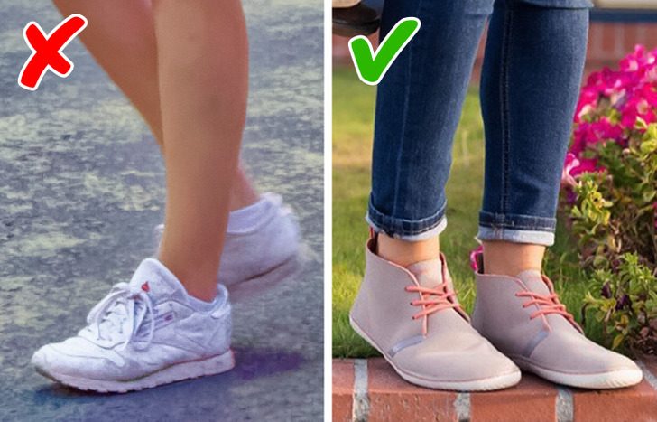 В обуви с круглыми носами пальцы чувствуют себя комфортно и могут свободно шевелиться. При этом овальная форма носка подходит еще лучше. Она выглядит довольно изящно, и стопы в этих туфлях не кажутся слишком крупными. А вот моделей с узкими или квадратными носами лучше избегать. Эти туфли обычно слишком вытянутые, они стискивают пальцы, из-за чего на ногах образуются мозоли. При длительном ношении такой обуви на стопе в области большого пальца может вырасти шишка.