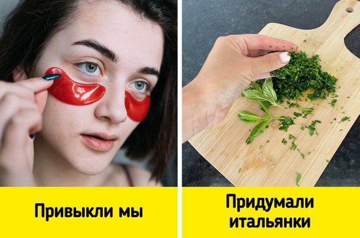 Многие итальянские женщины, особенно старшего поколения, используют необычные продукты в домашнем уходе за кожей. Например, пасту из нута и лимонного сока. Также у них популярны маски из йогурта или клубники. А знаменитая итальянская актриса Софи Лорен советует вместо патчей накладывать компрессы с измельченной мятой, чтобы избавиться от темных кругов под глазами.
