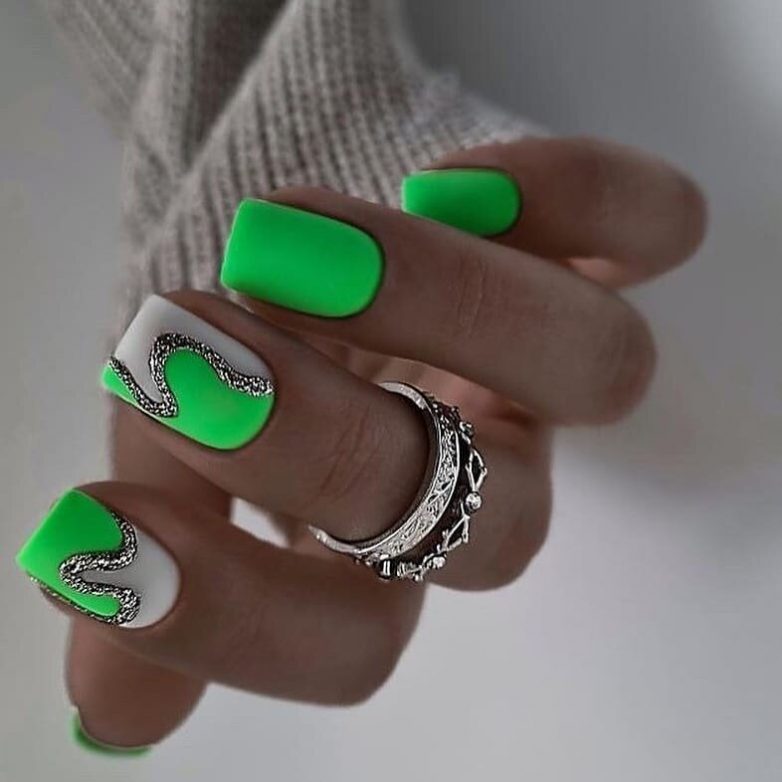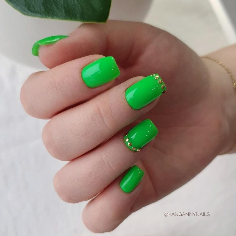 Среди множества оттенков стоит выделить насыщенный, умопомрачительный и игривый салатовый маникюр. Пусть он не подходит ко всем образам, но именно дизайн станет главным ярким акцентом в вашем имидже. Давайте вместе посмотрим, какие варианты нейл-арта с этим классным цветом предлагают нам мастера.