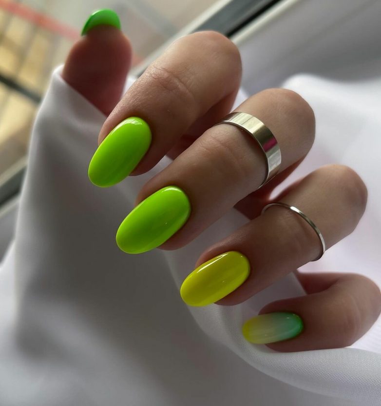 Салатовый маникюр омбре