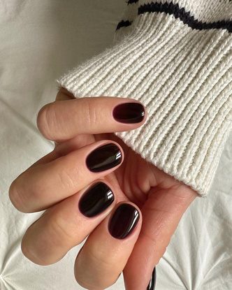 Один из самых актуальных цветов осенью — коричневый. Тем более, что в тренды вошел латте-маникюр в кофейных оттенках. Темно-коричневый лак выглядит утонченно и женственно и также станет альтернативой черному или красному покрытию.