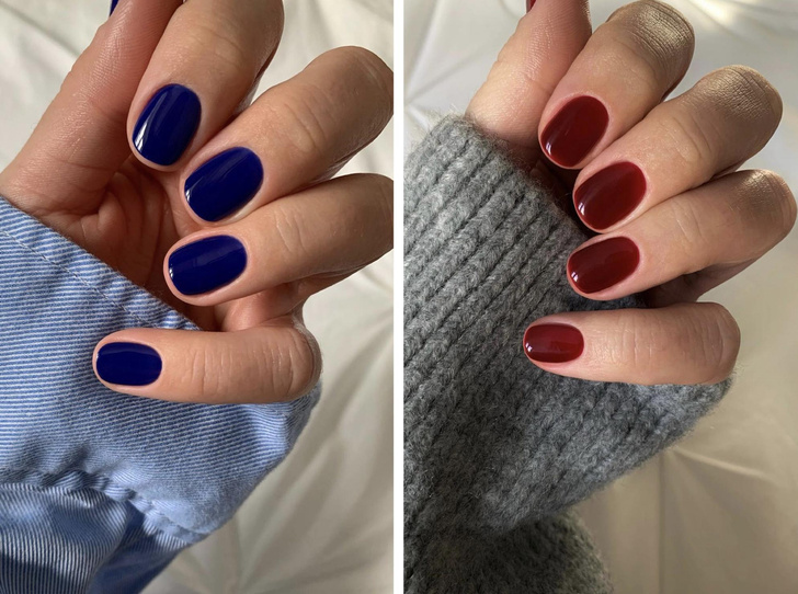 Красный лак никогда не выходит из моды, а осенью становится еще более актуальным. Если вам не нравятся яркие оттенки, попробуйте более насыщенный темно-красный или вишневый лак, который подойдет к образу в эстетике «тихой роскоши».