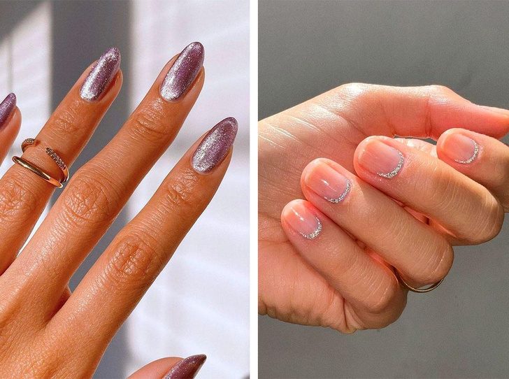 Собрали самые модные блестящие нейл-арты, которые подойдут на каждый день.
