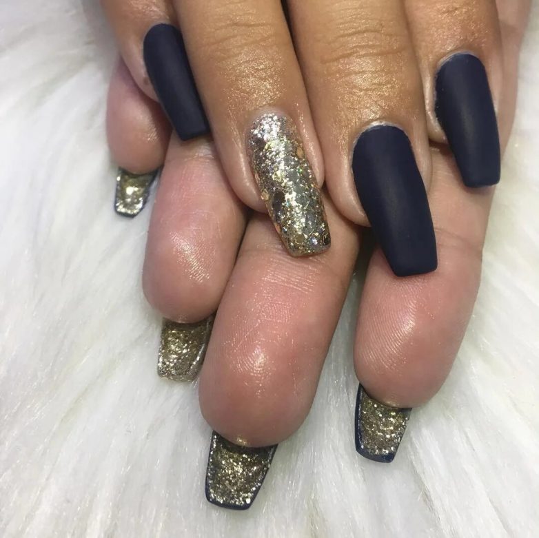 Некоторые модницы, которые обожают выделяться, выбирают с обратной стороны ногтевой пластины глиттер. Причем сверху ногти они могут покрыть обычным нюдом. В итоге получается практичный маникюр, который можно выбрать для любого образа.