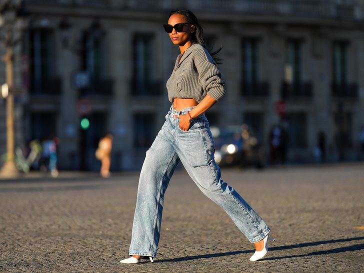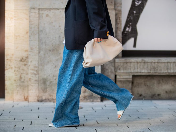 Чтобы ноги казались бесконечными и стройными, сочетайте широкие джинсы с обувью на каблуке. Если сделаете выбор в пользу обувь с острым мысом, это позволит вытянуть силуэт и сделать ноги визуально длиннее. Обувь с квадратным мысом сделает лук более эффектным и фактурным, а платформа добавит несколько сантиметров к росту.
