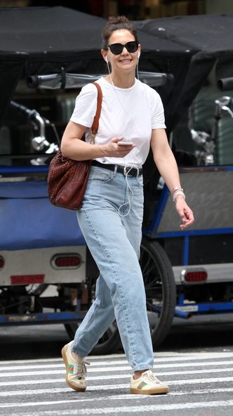 Более универсальным, чем сочетание белой рубашки и джинсов, может быть только сет из денима и базовой футболки. Благодаря отсутствию принтов и ненужного декора, получается лаконичный и сдержанный аутфит. А эту базу уже можно использовать как полотно для создания интересных и запоминающихся нарядов. Например, к такому сочетанию можно добавить крупные выразительные серьги, многослойное колье или платок на шею, а также завершить образ кардиганом, жакетом или рубашкой свободного кроя.