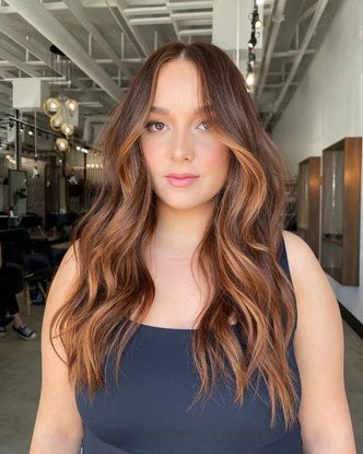 Тем, кому нравится каштановый оттенок волос, стоит попробовать более светлое окрашивание с золотистыми бликами. Такое окрашивание не требует специального ухода: достаточно будет домашних средств для окрашенных волос, которые помогут сохранить яркость оттенка. Кроме того, это окрашивание универсально и подойдет как теплому, так и холодному подтону кожи.
