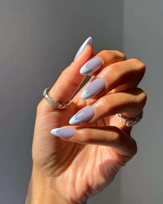 Лето пока не хочет нас отпускать, поэтому синие цвета этой осенью будут самыми популярными, по мнению аналитических агентств. Синий часто ассоциируют с миллионерами и богатством, поэтому, говорят, что такой маникюр — к деньгам. Попробуйте французский маникюр с синими разводами, лучше всего такой дизайн выглядит на ногтях миндальной формы.