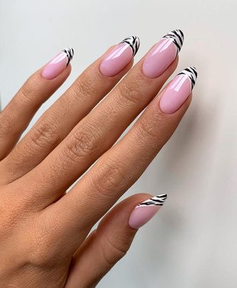 Один из самых известных нейл-мастеров Голливуда — Том Бачик — поделился в сети маникюром Камилы Кабельо и Дженнифер Лопес с интересным дизайном. Название работ переводится с английского, как «ногти под смокинг». Элегантное сочетание черно-белых полос напоминает о старых французских фильмах и о классических костюмах. Еще один вариант дизайна — животный принт или абстрактные рисунки по свободному краю.