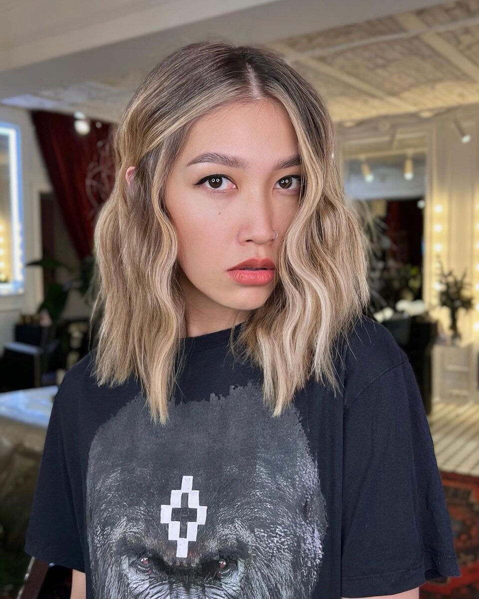 Это вариант, который добавляет тепла и глубины светлым волосам. Смешанный блонд сочетает в себе светлые и темные оттенки блонда с небольшими карамельными акцентами.Этот стиль создает красивый, многогранный эффект и добавляет вашему образу осеннего уюта.