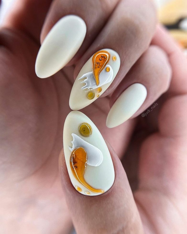 Осенний миндальный маникюр также позволяет воплотить в жизнь самые смелые идеи в области геометрии и абстракции. Геометрические узоры, абстрактные рисунки и гармоничные линии — все это придает маникюру современный и стильный вид.