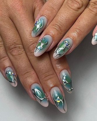 Если успели соскучиться по яркой зелени, маникюр — отличный способ принести в свою жизнь свежих красок. Зеленые акценты в пастельных и светлых оттенках палитры выглядят свежо и необычно в холодное время года. Осенью мы предлагаем попробовать модные «ногти-аура» в этом цвете — контраст зеленого и розового сделает маникюр очень стильным.