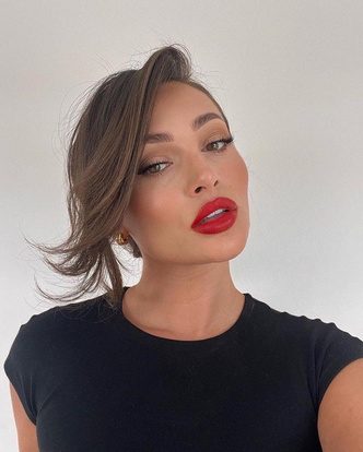 Красные губы не всегда требуют четкого контура, особенно, если это более приглушенные оттенки палитры. Эффект мягкого контура делает макияж более повседневным и сдержанным. Для приема вам понадобится матовая помада и кисть. Нанесите средство как обычно, а затем проведите кистью по контуру, чтобы сделать его менее резким и четким. Еще один способ повторить макияж — нанести помаду с помощью пальцев. Прием поможет создать эффект зацелованных губ со слегка смазанным контуром — выглядит такой макияж романтично и непринужденно.