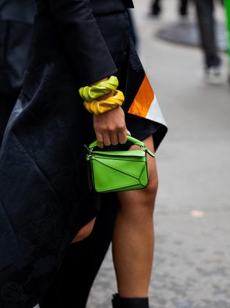 Представительницы экстравагантного вектора стиля могут носить аксессуары ярких контрастных цветов. Фактура может быть от винтажного металла до страз, пайеток, перьев. По размеру, как правило, средние и крупные. Линии могут быть смешанные или, наоборот, нарочито графичные, чтобы подчеркнуть экстравагантную внешность.