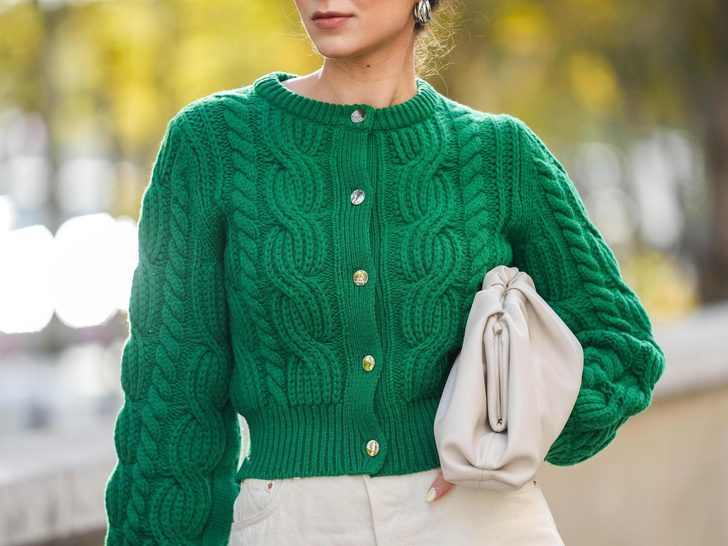 Отказаться стоит и от кардигана с круглой горловиной, которая визуально увеличивает ширину плеч и нарушает пропорции тела. Вместо такой модели стоит присмотреться к кардигану с V-образным вырезом — он освежит образ и добавит ему элегантности.