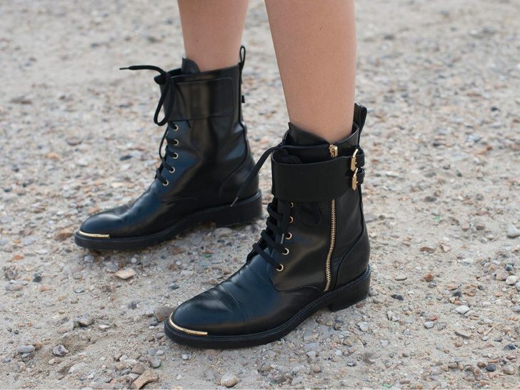 Такой декор давно перестал быть актуальным. Женщины сегодня отдают предпочтение тем сапогам, которые легко сочетать в самых разных образах, а обувь в стиле бохо таковой не является. На что заменить бахрому, чтобы модель была заметной, но при это этом сдержанной? Предлагаем обратить внимание на сапоги с металлическими пряжками — они легко впишутся в сезонные образы и придадут им дерзости. Такой декор чаще всего встречается на байкерских ботинках, популярных в этом сезоне.