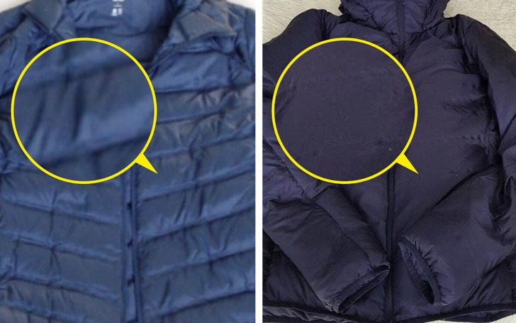 Для наглядности женщина продемонстрировала одну и туже куртку до и после чистки. На втором фото швы между ячейками словно «рассосались».