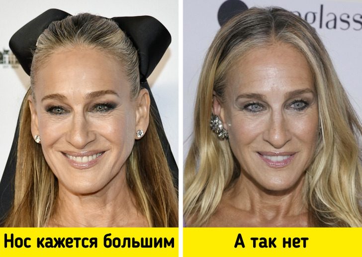 Например, крупный нос можно скорректировать с помощью больших сережек. Дело в том, что уши и нос находятся примерно на одной линии — добавляя крупные украшения, можно сместить фокус внимания на нижнюю часть лица, и нос будет выглядеть меньше.