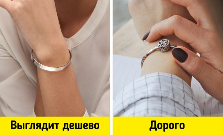 Выбирая украшения, стоит предпочесть более темные оттенки металла светлым. Светлый материал выглядит более дешевым, так как на бижутерию обычно просто наносят металлическое покрытие, которое сильно блестит. Настоящие золото или серебро не такие яркие и имеют насыщенный глубокий оттенок.