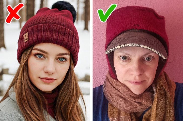 В действительно холодные и ветреные дни лучше не ограничиваться только одним головным убором. Сначала стоит надеть бейсболку (ее козырек будет защищать глаза и лицо от ветра и солнца), а поверх натянуть теплую шапку, которая хорошо сохраняет тепло.