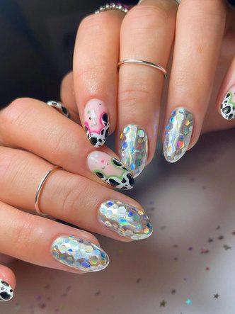 Этот тренд остался еще в 2022 году, но западные нейл-стилисты продолжают о нем иногда вспоминать. Правда, на наше усмотрение, об этом дизайне стоит забыть. Смотрится несколько вычурно, не самый практичный в носке, и уже точно устаревший, чтобы отмечать с ним Новый 2024 год. И даже не важно какого цвета будет дизайн, лучше просто оставить его в прошлом.