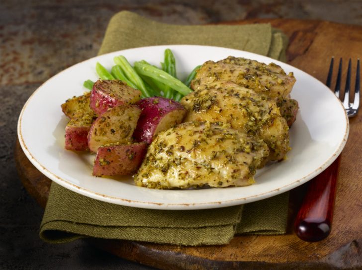 Этот вид мяса самый что ни на есть диетический — максимальное содержание белка для прекрасного и быстрого утоления голода на мизерное содержание жира. А проще говоря, в грудке, запеченной в духовке или сваренной без большого количества соли, жира вообще практически нет. А если вам хочется побаловать себя на ночь внушительным бутербродом, замените любимую докторскую колбасу кусочком куриного мяса, а батон — на ломтики цельнозернового, очень полезного и низкокалорийного хлеба.