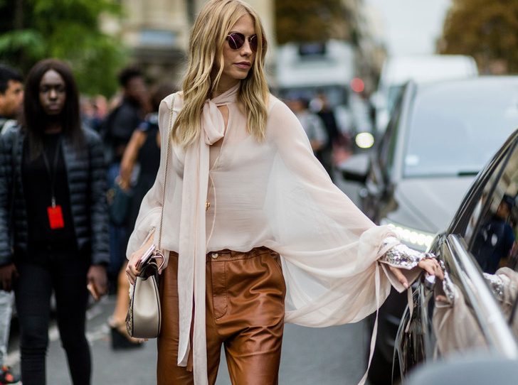Декорированная бусинами, стразами или кружевом, эффектная блуза прекрасно подойдет для новогодней вечеринки в гостях у друзей. Надев ее вместе с лаконичными брюками, юбкой или даже джинсами, вы сохраните праздничное настроение образа, но при этом не будете выглядеть слишком вычурно в расслабленной домашней атмосфере. Такого же эффекта можно добиться, если украсить простую белую рубашку крупным сверкающим колье или массивными серьгами. Яркие аксессуары зададут веселый новогодний тон, но аутфит останется уместным: размер украшений на фоне всего костюмного ансамбля слишком мал, чтобы сделать лук чрезмерно нарядным. Только выбирайте что-то одно — серьги или ожерелье: надевать все лучше сразу — дурной тон и знак отсутствия вкуса.