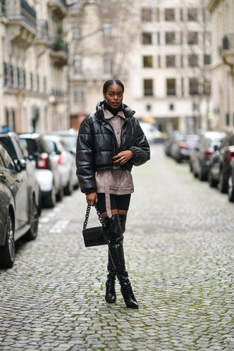 Главная ошибка, которую допускают все женщины, надевая укороченный пуховик, — это его сочетание с длинной одеждой, например, свитерами, рубашками или кардиганами. Запомните модное правило: верхняя одежда должна прикрывать нижние слои вашего образа. Если в вашем гардеробе короткий пуховик, тогда подбирайте к нему аналогичные кроп вещи или же узкие, которые можно заправить в брюки, джинсы или юбку.