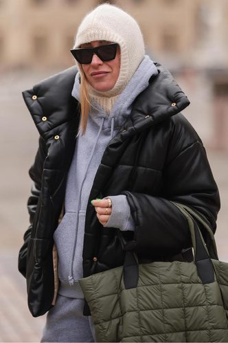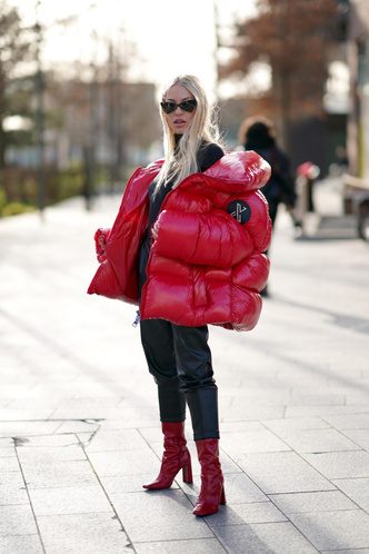 Объемный пуховик смотрится непропорционально с узкой и короткой обувью, поэтому здесь важен баланс. Отдайте предпочтение ботинкам на шуровке или же уггам, которые вновь в тренде.