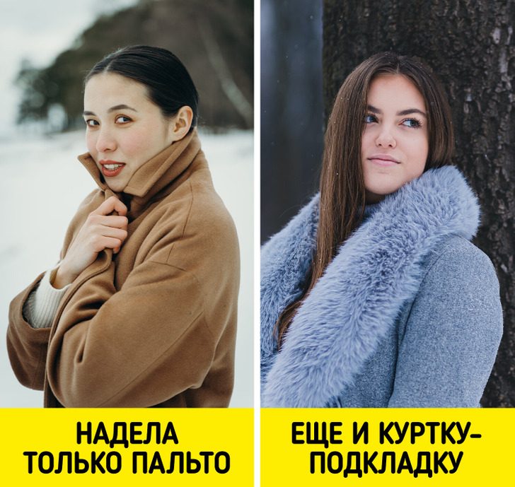Средний — толстовки и кофты, не ограничивающие движения рук.Оболочку — то есть верхнюю одежду, соответствующую погодным условиям. Например, некоторые нейлоновые куртки спасут даже при при — 20 °C. При экстремальных температурах могут пригодиться специальные пуховики с высокой плотностью наполнителя. А вот шубы из экомеха хотя и служат современной заменой натуральному, защищают от холода менее эффективно.