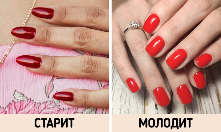 Поэтому специалисты считают, что лучше оставить привычку использовать темные лаки в прошлом. Лучше выбирать аккуратные нюдовые и нейтральные оттенки или, наоборот, яркие цвета (например, ярко-красный).