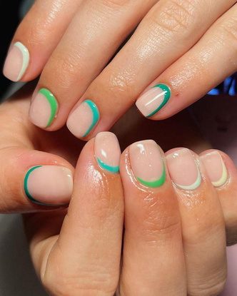 Асимметрично расположенные тонкие линии — дизайн для тех, кто любит сдержанный маникюр, но с изюминкой. В преддверии весны такие линии можно сделать в йогуртовых оттенках: персиковый, салатовый, желтый или бледно-розовый. А если вы не фанат ярких элементов на ногтях, выбирайте классический черный или белый цвет — с ними вы точно не прогадаете.