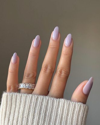 Если вам хочется отойти от привычной нюдовой палитры и попробовать что-то новое, присмотритесь к сиреневому лаку. Этот оттенок будет актуален в любой время года: зимой он напомнит о теплых и солнечных днях, а летом выигрышно подчеркнет загар и сделает его более темным. Разнообразить однотонное покрытие можно с помощью френча, ярких рисунков или металлических акцентов. Одно из преимуществ этого маникюра — отрастать он будет незаметно