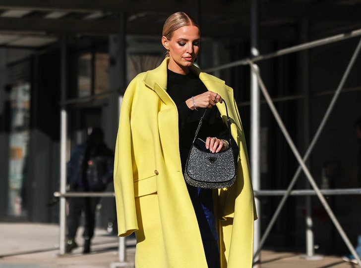 Джемперы из кашемира и вязаные аксессуары в оттенке лимонного сорбета навевают воспоминания о тепле даже в крепкие морозы. Кроме того, они гармонично вписываются в привычный тотал-блэк. Даже если решиться на эксперимент с цветом трудно, начните с малого — добавьте уютный шарф из ангоры или шапку цвета солнца.