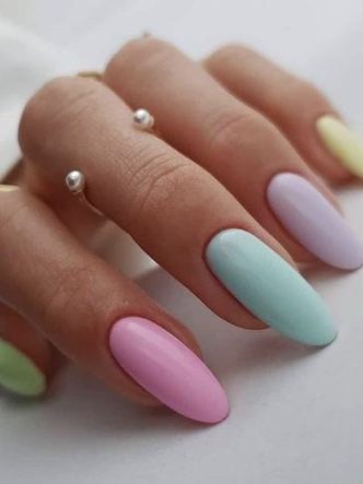 Классическое покрытие с использованием трендовых оттенков, где на каждом ноготке — свой цвет, — еще один нейл-тренд весны 2023 Здесь можно играть с вариациями, используя совершенно разные цвета — от фиолетового до персикового, или сделать плавный градиентный переход, где на каждом ногте будет покрытие немного светлее предыдущего.
