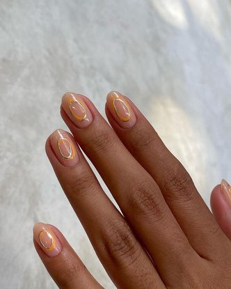Один из способов разнообразить нюдовый маникюр — добавить ассиметричные линии. Базу можно сделать бежевого или молочного цвета, а поверх нанести тонкими мазками яркий лак. Или создать собственный дизайн: на черных ногтях нарисовать золотые линии. Любые сочетания цветов будут выглядеть очень интересно и утонченно. Кстати, тренд визуально делает ногтевую пластину длиннее, поэтому выигрышно смотрится на коротких ногтях любой формы.