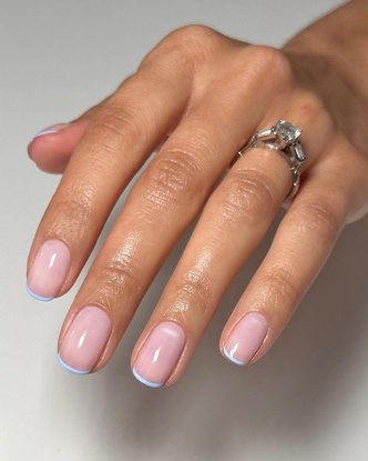 Классический или цветной френч подойдет не только для помолвки, но и для свадьбы. Лаконичный и сдержанный дизайн делает руки более аккуратными и ухоженными, при этом не привлекая к себе лишнее внимание. Мы советуем выбрать для помолвки микро-френч — более минималистичную версию французского маникюра. А ограничений в выборе оттенка нет — это может быть как яркая, так и пастельная палитра.