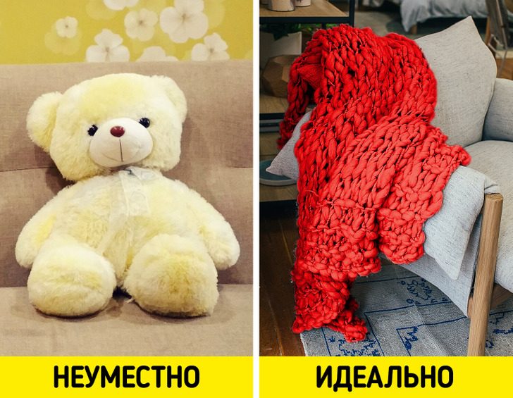 Если хочется преподнести что-то уютное и милое, то можно обратить внимание на более практичные вещи. Например, меховые тапки. Или большой вязаный плед. Он не только принесет пользу в холодное время года, но и украсит интерьер не хуже плюшевого мишки.