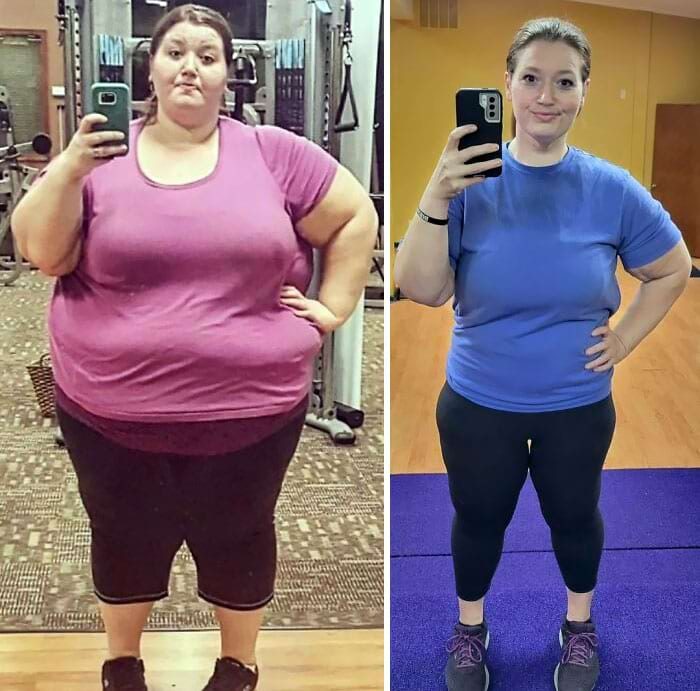 «От 94 кг до 53 кг. Меня бросили из-за моего веса, я похудела, а затем меня бросили из-за дряблой кожи. Решила пока что забыть о мужчинах и сосредоточиться на себе»
