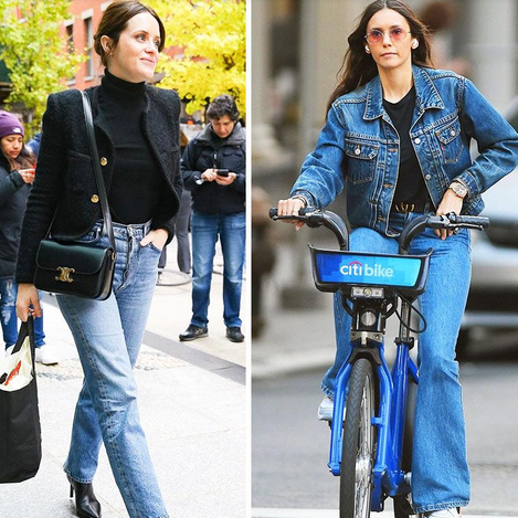 Деним настолько запал нам в душу, что мы вновь выбираем в образах джинсовые тотал-луки. Наденьте синий комбинезон или вдохновитесь аутфитами Нины Доберв и Эйприл Бенбери, примерив джинсовые штаны и куртку из одного костюма или, наоборот, разных оттенков. Стилизуйте выходы с акцентной обувью, необычными сумками и трендовыми головными уборами.